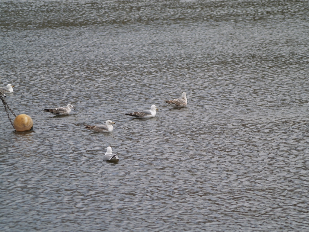 ...al llegar a un lugar  cerca de la orilla,  se encontraron con un grupo de gaviotas que estaban bastante agresivas. La madre, al principio, les hizo una demostración de fuerza para intentar espantarlas...
